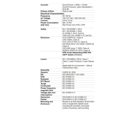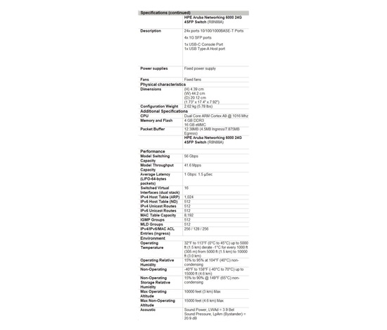 | Specification | 6000 24G 4SFP Switch (R8N88A) |