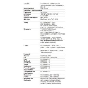 | Emissions | VCCI-CISPR 32, Class A CNS 15936, Class A FCC CFR 47 Part 15, Class A; EN 55032:2015 / A11:2020 / CISPR-32, Class A ICES-003 Issue 7: 2020, Class A AS/NZS CISPR 32: 2015, Class A |