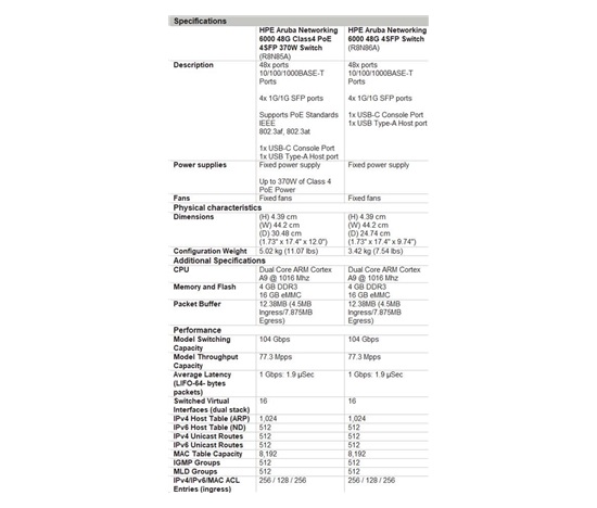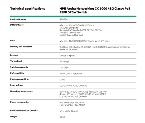 HPE Aruba Networking CX 6000 48G 4SFP Switch