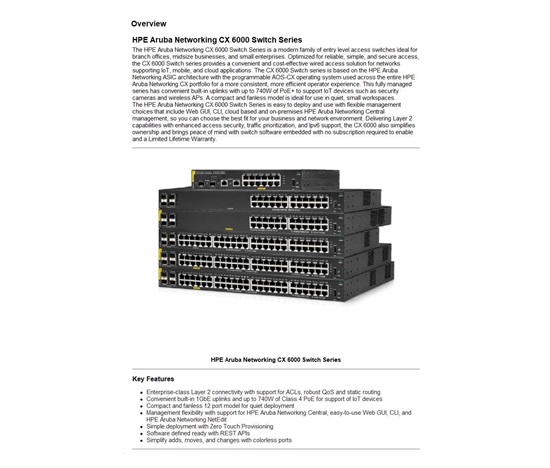 Úvod IT Síťové prvky Switche HPE Aruba Networking CX 6000 48G 4SFP Switch