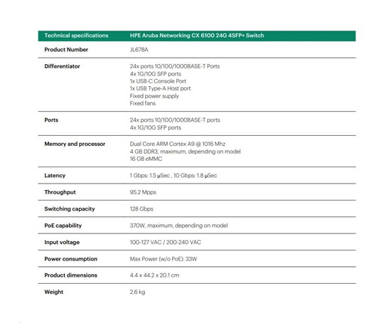 HPE Aruba CX 6100 Series — Key Highlights