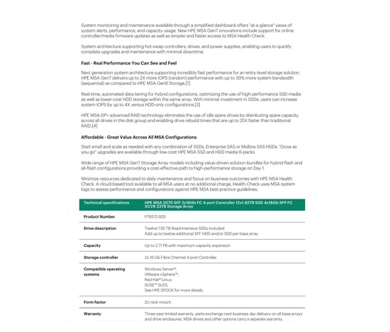 HPE MSA 2070 SFF 23TB (12×1.92TB R0Q47A, 2x16G FC4pController, 4x16Gb SFP-SFP-FCXCVR C8R24B) Smart Choice