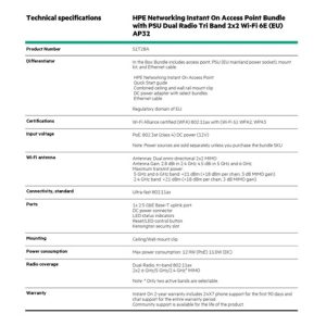 HPE Networking Instant On Access Point Bundle with PSU Dual Radio Tri Band 2×2 Wi-Fi 6E (EU) AP32 ( S1T28A )