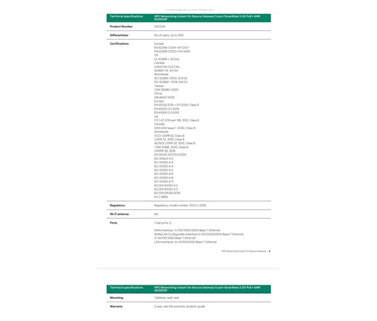 HPE Networking Instant On Secure Gateway 5-port SmartRate 2.5G PoE+ 64W SG2505P