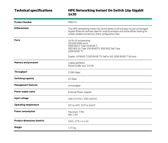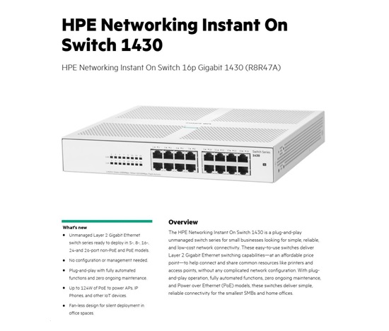 HPE Networking Instant On Switch 16p Gigabit 1430 (R8R47A)