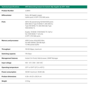 HPE Networking Instant On Switch 48p Gigabit 4p SFP+ Fanless 1930 JL685A