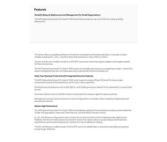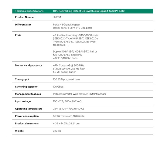 HPE Networking Instant On Switch 48p Gigabit 4p SFP+ Fanless 1930 JL685A