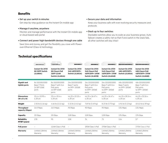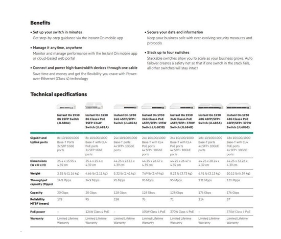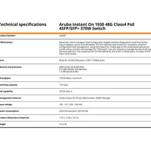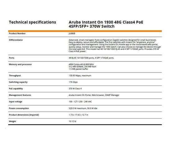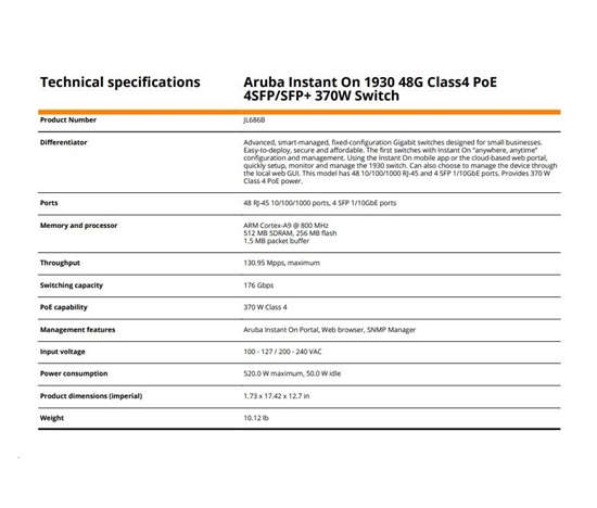Aruba Instant On 1930 48G Class4 PoE 4SFP/SFP+ 370W Switch (JL686B) |