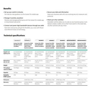 48 RJ-45 autosensing 10/100/1000 Class 4 PoE ports (IEEE 802.3 Type 10BASE-T, IEEE 802.3u Type 100BASE- TX, IEEE 802.3ab Type 1000BASE-T); Duplex: 10BASE-T/100BASE-TX: half or full; 1000BASE-T: full only 4 SFP+ 1/10GbE ports |