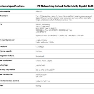 • Product Name: HPE Networking Instant On Switch 1430 8-Port Gigabit