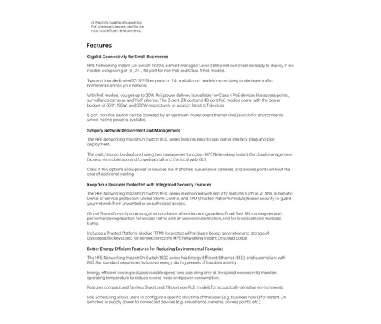 Cost-effective PoE Support: With half of the ports capable of supporting PoE, these switches are ideal for the most cost-efficient environments.