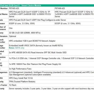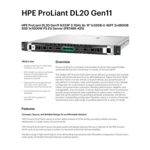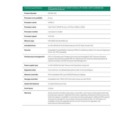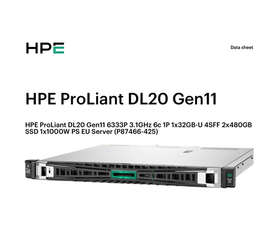 HPE PL DL20g11 6333P (3.1G/6C12T) 1x32G 2x480GB VROC 4SFF 1x1000W 4x1G NBD333 Smart Choice