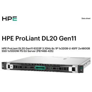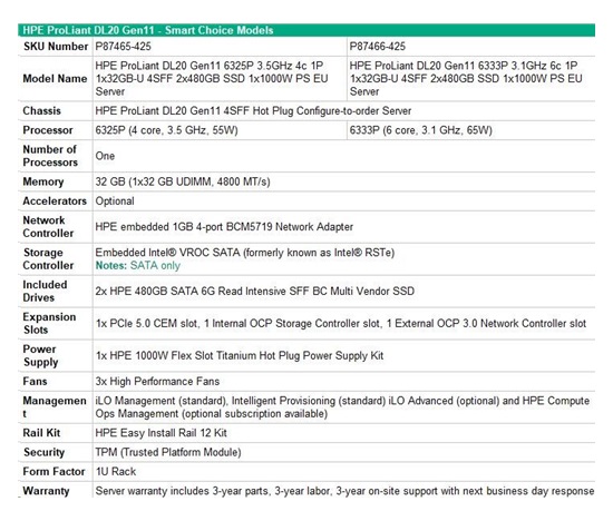 HPE PL DL20 gen11 6333P (3.1G/6C12T) 1x32G 4SFF 2x480GB VROC 1x1000W 4x1G NBD333 Smart Choice