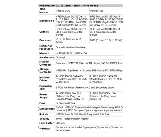HPE PL DL345g11 AMD Epyc 9015 (3.6G/8C) 2x32G 2x960G 2x1000W MR416i-p 8LFF 4p1G Smart Choice (P81837-425)