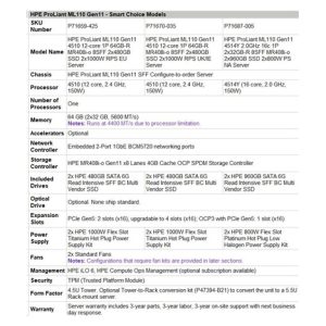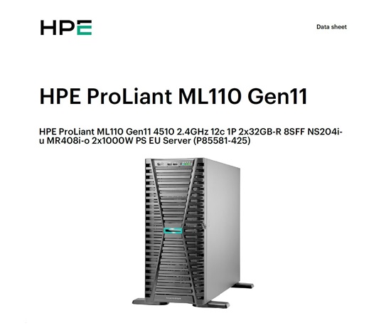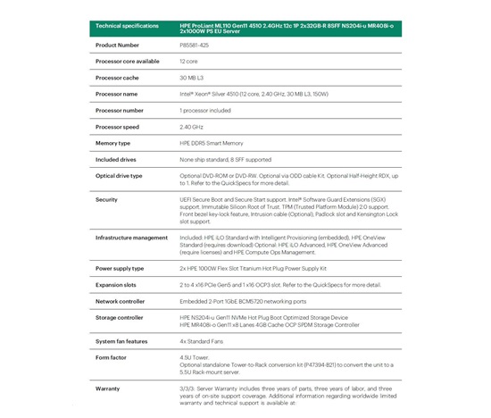 HPE PL ML110g11 4510 (2.4G/12C) NS204(2×480) 2x32G (P64706) MR408i-o 2x1000W 8SFF 2x1G NBD333 Smart Choice