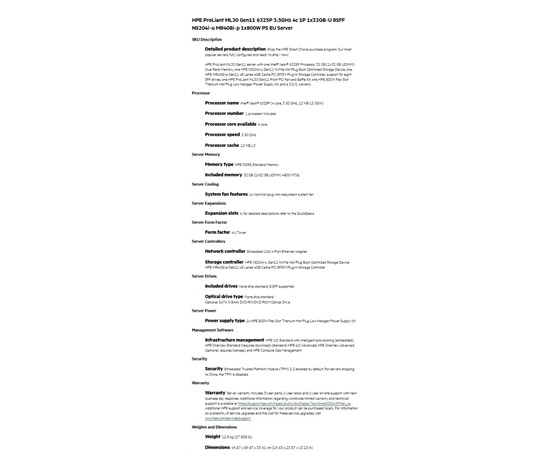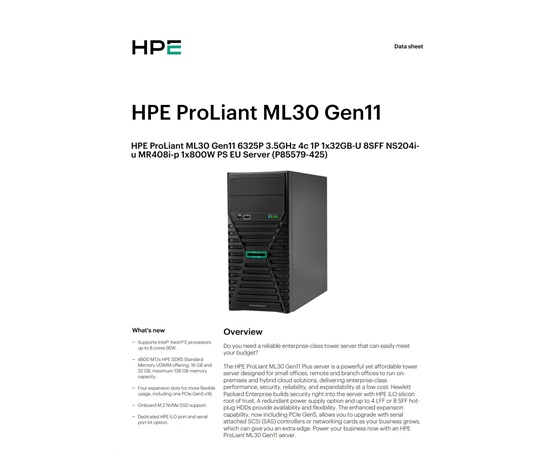 Úvod IT Servery a zálohování Servery HPE PL ML30g11 6325P (3.5G/4C8T) 1x32G 8SFF NS204i-u(2x480g) MR408i-p/4G 2x800W 3/1/1 Smart Choice