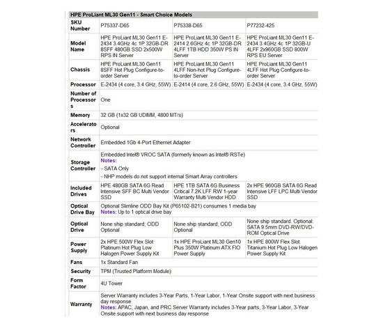 HPE ProLiant ML30 Gen11 – Smart Choice Models