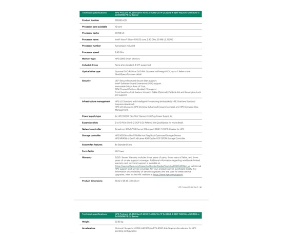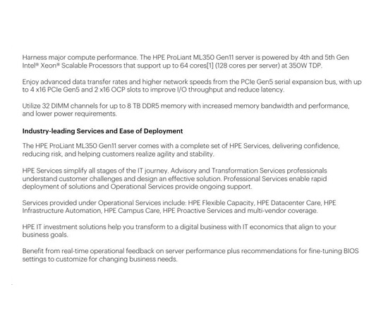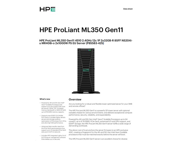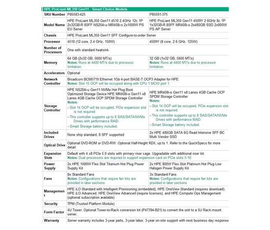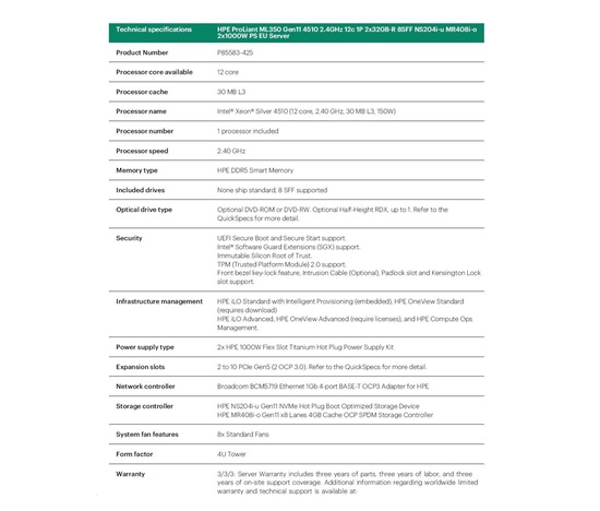 HPE PL ML350g11 4510 (2.4G/12C) 2x32G (P64706) NS204(2×480) MR408i-o 2x1000W 8SFF 4p1Gb 8fans Smart Choice