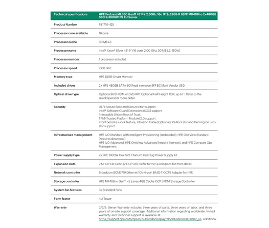 HPE ProLiant ML350 Gen11 – Smart Choice Models |