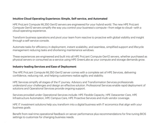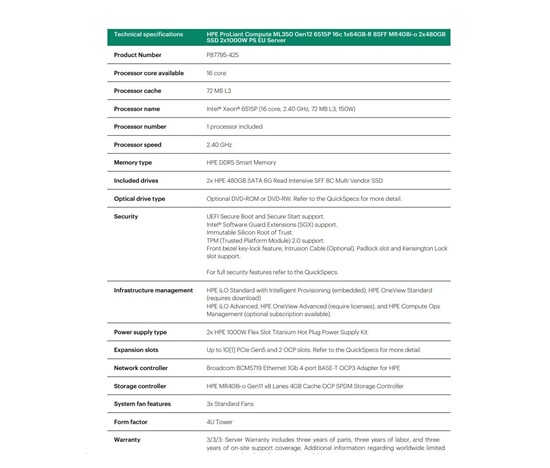 HPE PL ML350g12 6515P (2.4/16C) 1x64G (P69728) 2x480G MR408i-o 8SFF 2x1000W 1GbE NBD333 Smart Choice