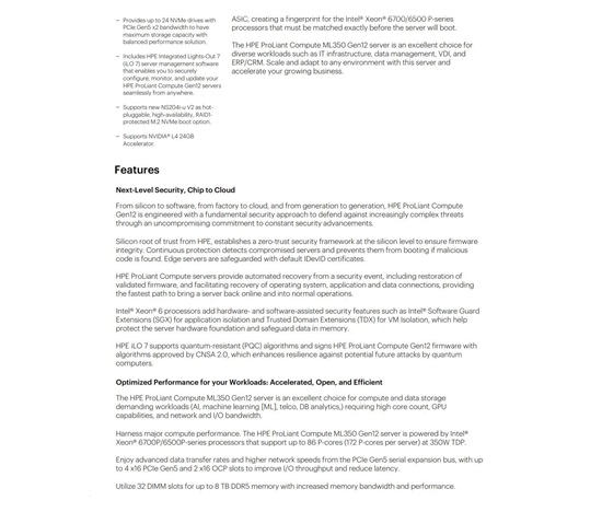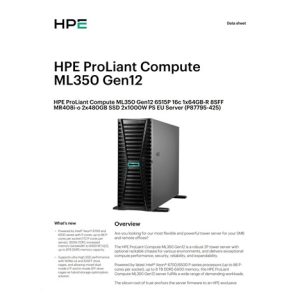 HPE PL ML350 Gen12 6515P (2.4/16C) 1x64G (P69728) 2x480G MR408i-o 8SFF 2x1000W 1GbE NBD333 Smart Choice
