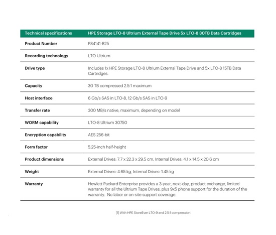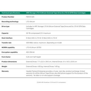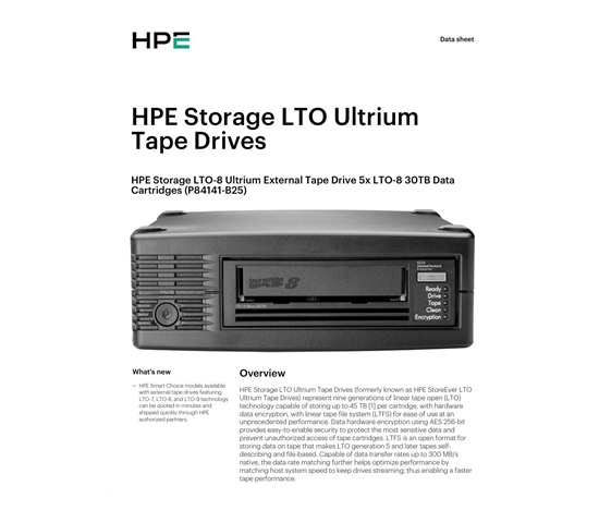 HPE Storage LTO-8 Ultrium External Tape Drive 5x LTO-8 30TB Data Cartridges