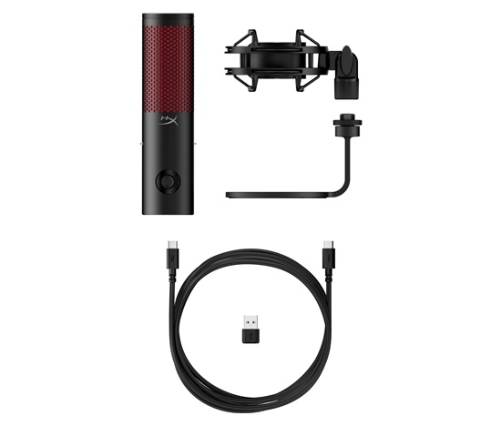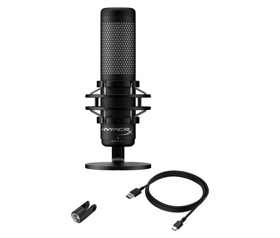 USB mikrofon HyperX QuadCast 2, 3m kabel USB-C na USB-C, adaptér USB-C na USB-A, úvodní příručka |