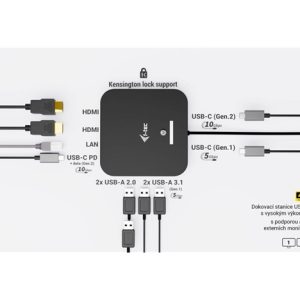 i-tec USB-C Dual HDMI Docking Station with Power Delivery 100W + i-tec Universal Charger 100W