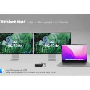 * macOS nepodporuje technologii Multi Stream Transport (MST), takže při použití tohoto systému bude na obou připojených monitorech zobrazen stejný obraz.