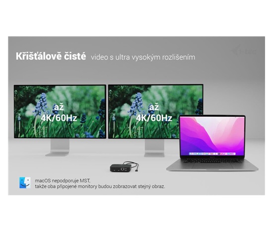 * macOS nepodporuje technologii Multi Stream Transport (MST), takže při použití tohoto systému bude na obou připojených monitorech zobrazen stejný obraz.