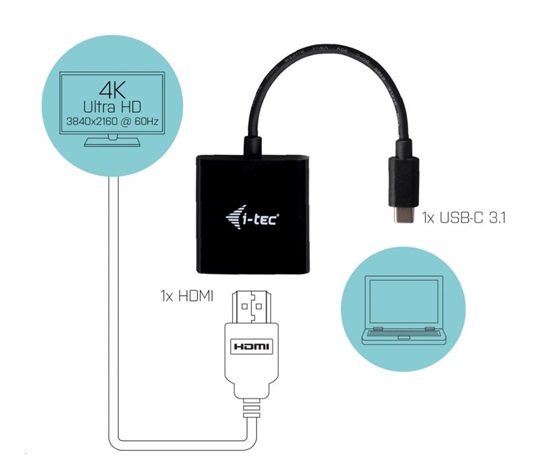 i-tec USB-C HDMI 4K/60 Hz adaptér s kabelem (15 cm)