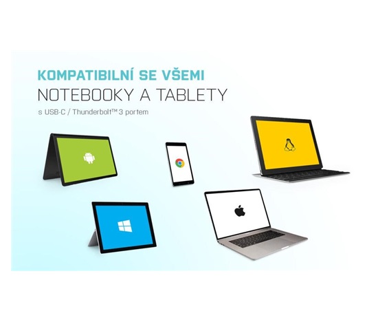Hardwarové požadavky: notebook, tablet, PC, smartphone s?OS Windows, Mac nebo Google s volným portem USB-C s podporou “DisplayPort Alternate Mode”
