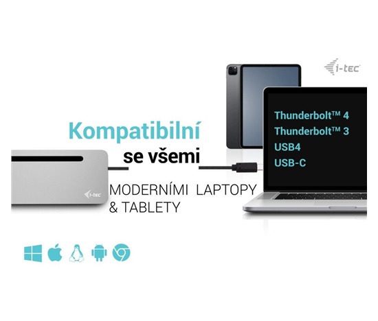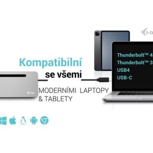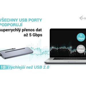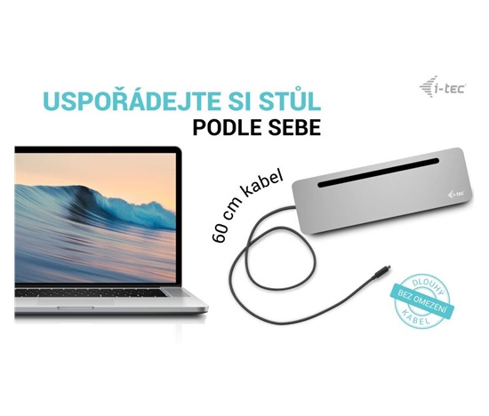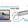 - Ergonomický design s hliníkovým krytem, dokovací stanice má integrovaný 60 cm kabel USB-C, takže je vhodná pro použití se všemi notebooky & tablety s displeji do 15″ včetně.
