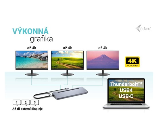 i-tec USB-C Metal Ergonomic 3x 4K Display Docking Station + Power Delivery 100 W