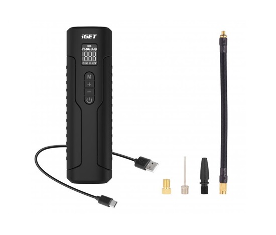 iGET BC1 Pocket Compresor je cestovní kompresor určený jak pro cyklisty, tak pro motoristy. Díky pěti režimům – čtyřem, přednastaveným a jednomu plně volitelnému – je tak neocenitelným pomocníkem na cestách i na dovolené. Kompresor pracuje v rozmezí 0,02-10,3 bar (3-150 psi) a díky přednastaveným režimům určeným pro jízdní kola, automobily, motocykly a pro míče, budete mít vždy představu o tom, jaká pneumatika vyžaduje jaký tlak.