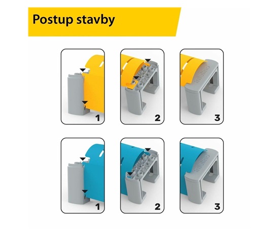 Sada obsahuje 2 staniční a 2 tunelové vložky, ze kterých tyto prvky velmi snadno vytvoříte. Skládací listy jsou barevně odlišené a navrženy pro kombinaci s podpěrnými věžemi (prodejné samostatně). Na jejich výrobu byl použit odolný a ekologický PP plastový materiál, takže si poradí i se silnějším provozem.