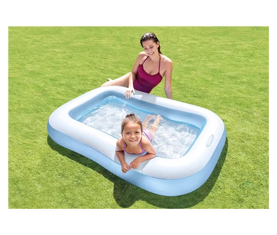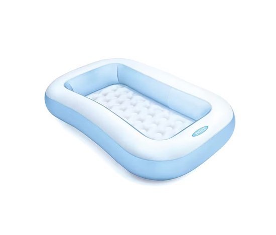 Nafukovací bazén Intex Baby Pool je možné díky kompaktním rozměrům použít na zahradě, terase nebo dokonce na balkoně. Bazén je vyroben z testovaného vinylu a má nafukovací podlážku. Silné, měkké boční stěny a měkká, foukaná podlaha budou bezpečné a komfortní pro děti.