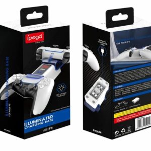iPega P5003 pro nabíjení až dvou gamepadů pro PS5. Gamepad se jen zapojí do vestavěného konektoru a LED indikace vás informuje o stavu nabití.