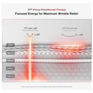 Zatímco většina domácích masek spoléhá na technologii LED, JOVS 4D jde o krok dál. Využívá pokročilou FPT (Focal Photothermal Therapy) technologii , která koncentruje energii laseru do úzkých paprsků s úhlem menším než 20° , na rozdíl od více než 120° u běžných LED. Díky tomu pronikají mnohem hlouběji do dermis – vrstvy kůže, kde vzniká kolagen. Díky 6x vyšší energetické účinnosti oproti LED diodám dokáže laser efektivněji stimulovat buněčnou obnovu a cíleně řešit příčiny stárnutí pleti.