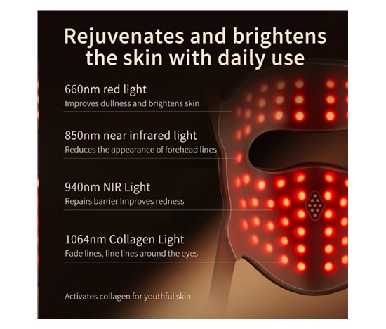 - 850nm (NIR): Zvyšuje buněčnou aktivitu pro dosažení pevné a odolné pleti, zaměřuje se na vrásky na čele.