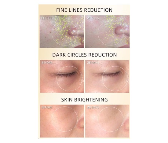 - Klinicky prokázaná redukce vrásek kolem očí o 24,56% a tmavých kruhů o 29,41% za 28 dní.