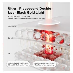 - Režim WHITEN (Bělení skvrn): Cíleně se zaměřuje na tmavé pigmentové skvrny, pihy a stopy po akné. Energie je pohlcena nahromaděným melaninem, který se teplem rozloží na menší částečky a tělo je následně přirozeně odbourá. Skvrny tak postupně blednou a stávají se méně viditelnými.