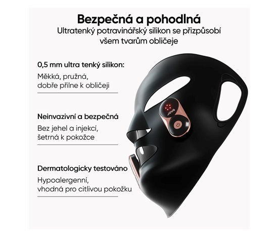 Maska je vyrobena z hypoalergenního silikonového materiálu v potravinářské kvalitě, který je maximálně šetrný i k té nejcitlivější pokožce. Díky tomu je zcela vhodná pro citlivou pleť, nezpůsobuje podráždění a umožňuje dlouhodobé, komfortní používání. Technologie EMS je bezpečná, neinvazivní a klinicky ověřená, takže si můžete dopřát účinné liftingové ošetření s plným pocitem jistoty a pohodlí.