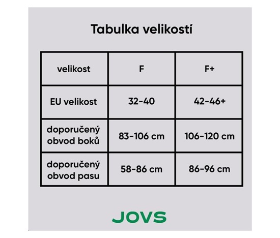 - Velikosti: F (pro obvod boků 66-85 cm), F+ (pro obvod boků 80-90 cm)