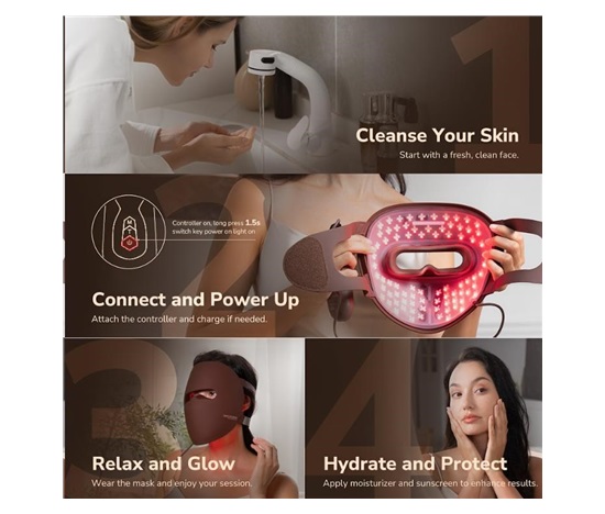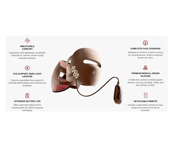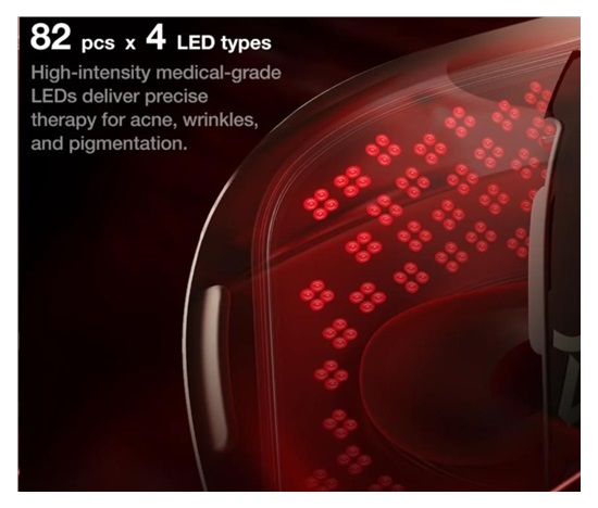 - Profesionální 4-spektrální LED terapie: Vybavena celkem 328 (82 x 4) vysoce intenzivními LED diodami pro maximální pokrytí a účinnost.