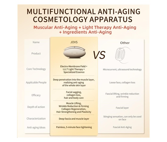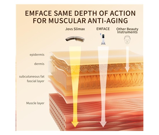 Většina kosmetických přístrojů se zaměřuje pouze na dermis, tedy na pokožku. Stárnutí však začíná hlouběji. Pokud svaly pod kůží ztratí svou pevnost, pokožka přijde o svou oporu a začne ochabovat a klesat – bez ohledu na to, kolik kolagenu obsahuje. JOVS Slimax jako jediný využívá technologii elektrických pulzních vln CET (Collagen Electrophoretic Techniques), která vysílá signály přímo do svalové vrstvy, stimuluje jejich aktivitu a obnovuje tak pevný základ celé tváře.