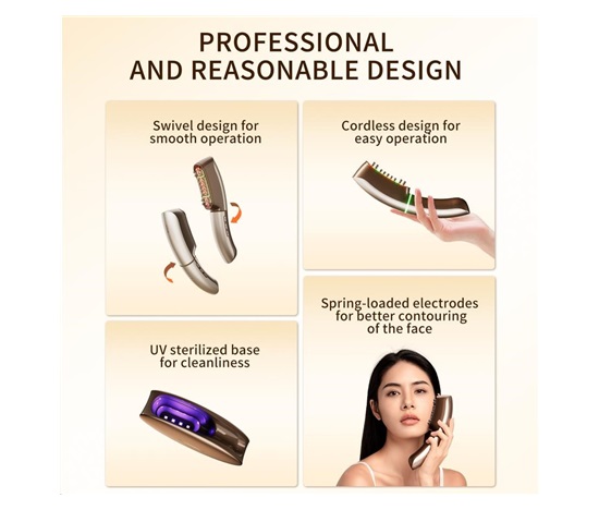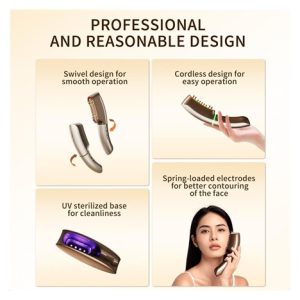- Prémiový design a hygiena: Otočná hlavice , pružinové elektrody a bezdrátové provedení s UV dezinfekční základnou.