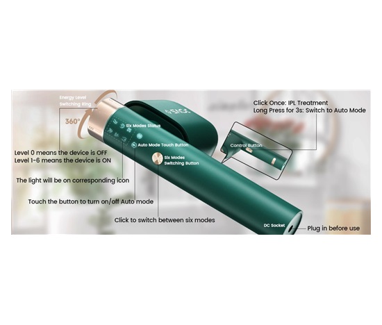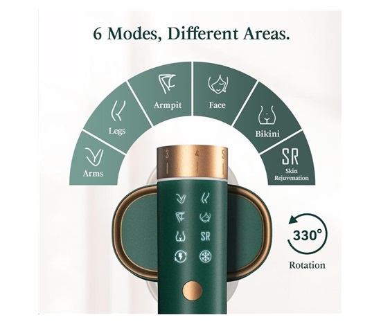- Přesné cílení na každou partii: 6 specializovaných režimů pro obličej, ruce, nohy, podpaží a oblast bikin s 6 úrovněmi intenzity.