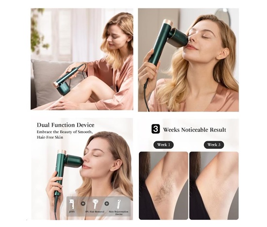 - Hybridní péče 2v1: Kombinuje efektivní odstraňování chloupků (OPT) a omlazení pleti (SR režim) v jednom přístroji.