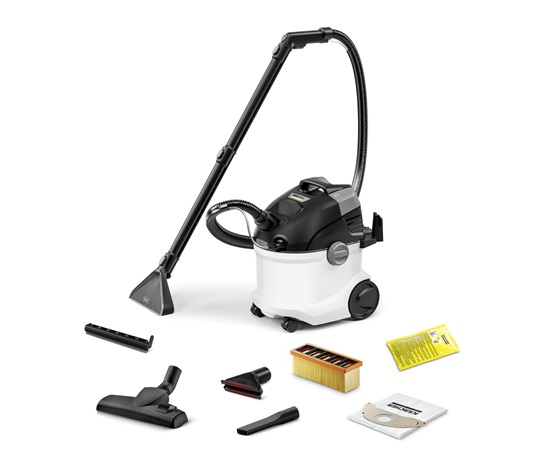 Hloubkový čisticí účinek v kombinaci s ergonomickým designem a multifunkčností: Tepovač SE 5 s atraktivním designem zajišťuje hygienické čištění mnoha textilních povrchů, jako jsou koberce, čalounění a čalouněný nábytek, koberce, schody s koberci, matrace, závěsy na stěnách a autosedačky. Osvědčená technologie rozprašování od společnosti Kärcher přináší nejlepší výsledky čištění: čistá voda a čistič koberců Kärcher RM 519 se pod tlakem nastříkají hluboko do textilních vláken a poté se spolu s uvolněnou špínou vysají zpět – ideální pro rodiny, alergiky a domácnosti s domácími mazlíčky. SE 5 je multifunkční výrobek 3 v 1, který lze díky rozsáhlému příslušenství používat i jako plnohodnotný vysavač na mokré a suché vysávání. Další funkce výbavy: 2nádobový systém s vyjímatelnou nádrží na čistou a špinavou vodu, ergonomické madlo pro snadné přenášení a praktické uložení příslušenství na přístroji. Po použití se zařízení snadno čistí, což zajišťuje dlouhou životnost výrobku.